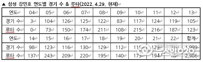 (뉴스인020 = 김민석 기자) 국가대표 포수 삼성 강민호가 2,000경기와 3,000루타 달성에 각각 1경기와 14루타만을 남겨두고 있다.