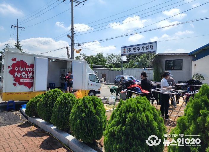 (뉴스인020 = 김성길 기자) 수원여자대학교 사회봉사단과 화성시동부보건소가 지난 폭우에 침수피해를 입은 이재민 돕기에 나섰다.