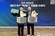 (뉴스인020 = 김성길 기자) 서천군농업기술센터는 지난 2일 충청남도농업기술원에서 열린 ‘제4기 충남 농업 미래리더 인증식’에서 서천군 청년농업인 최한열 씨와 이승원 씨가 충청남도 우수청년농부 인증패를 수상했다고 밝혔다. 이번 인증식은 충남 지역 청년농업인 24명을 대상으로 고소득, 새도전, 행복 등 3개 부문에 걸쳐 진행됐다. 이 가운데 최한열 씨와 이승원 씨는 ‘충남 농촌에 살며 행복한 청년농업인’을 선정하는 행복 부문에 이름을 올리며 서천 청년농업인의 역량을 입증했다. 최한열 씨(37·서면)는 2019년 귀농해 ‘아이줄농장’을 운영하고 있는 청년농업인으로, ‘내 아이에게 줄 수 있는 깨끗한 농산물’이라는 철학을 바탕으로 친환경 벼와 밤호박을 재배하고 있다. 또한 드론 방제 대행을 통해 고령 농업인의 일손 부족 해소에도 힘을 보태며 지역 농업 현장에서 역할을 다하고 있다. 이승원 씨(38·마산면)는 부모와의 협업경영을 위해 귀농한 청년농업인으로, 드론 조종사 자격을 취득해 연간 약 240헥타르 규모의 방제 작업을 직접 수행하고 있다. 이를 통해 스마트농업의 현장 적용