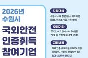 (뉴스인020 = 김성길 기자) 수원특례시가 관내 중소기업이 국외 안전인증 취득하는 데 소요되는 비용을 지원한다. 수원시는 24일까지 ‘2026년 국외 규격인증 취득 지원사업’에 참가할 창업·중소·제조기업 8개 업체를 모집한다. 인증비·시험비·컨설팅비 등 안전인증 취득에 필요한 총비용의 80%를 실비로 지원한다. 기업당 최대 2개 제품의 인증 취득을 지원하고, 지원 한도는 기업당 440만 원이다. 지원 분야는 미국 안전인증(UL·FCC·FDA), 유럽 안전인증(CE) 등 436개 규격이다. 제품안전인증이 아닌 아이에스오(ISO) 인증은 제외된다. 수원시 관계자는 “중소제조기업에게는 국외 안전인증을 취득하는 과정이 수출 장벽처럼 느껴질 정도로 쉽지 않다”며 “기업이 교역 대상국의 안전 규제에 선제적으로 대응할 수 있도록, 국외 안전인증 취득을 지원하겠다”고 말했다.
