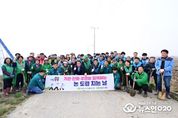 (뉴스인020 = 김성길 기자) 논산시가 본격적인 영농철을 앞두고 3일 채운면 장화리 일원에서‘논도랑 치는 날’캠페인을 전개했다. 이번 캠페인에는 백성현 논산시장을 비롯해 장화리 마을 주민 65명, 한국농어촌공사 직원 25명, 시 관계자 20명 등 총 100여 명이 참여해 영농 준비를 위한 구슬땀을 흘렸다. ‘논도랑 치는 날’은 개인 농경지 주변 소규모 용·배수로에 쌓인 퇴적물과 잡풀을 정비해 물길을 확보하는 활동이다. 큰 배수 시설뿐 아니라 실제 물 흐름을 좌우하는 논도랑을 정비함으로써 집중호우 시 발생할 수 있는 농경지 침수 피해를 줄일 수 있을 것으로 기대된다. 특히, 이날 현장에는 한국농어촌공사 논산지사(소장 서봉수) 직원들이 대거 동참해 기술적인 지원과 일손을 보탰으며, 주민들도 자발적으로 참여해 마을의 안전을 함께 지키는 공동체 의식을 다지는 계기가 됐다. 작업복 차림으로 현장을 찾은 백성현 논산시장은 주민들과 함께 직접 삽을 들고 논도랑 퇴적물을 정리하며 현장의 의견을 들었다. 백 시장은“논도랑 치기는 농촌의 생명길인 물길을 열어 재해로부터 안전한 논산을 만드는 첫걸음”이라