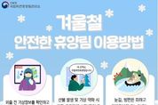 (뉴스인020 = 김나현 기자) ■ 겨울철 안전한 휴양림 이용방법 · 외출 전 기상정보를 확인하고 기온변화에 대비한 옷차림하기 · 산불 발생 및 기상 악화 시 해당 휴양림에 사전 문의 후 방문 자제하기 · 눈길, 빙판은 피하고 미끄럼방지 기능이 있는 굽 낮은 신발 신기 · 계단이나 목교 이용 시 난간 잡기, 처마 밑 고드름 조심하기 · 텐트 내 난방기구 사용 시 일산화탄소 경보기를 설치하고, 환기구 확보하기 · 지정된 장소에서 허용된 화구만을 사용하며, 불씨 꺼짐 확인 필수 국립자연휴양림, 겨울에도 안전하고 편안하게 이용하세요!