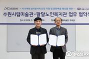 (뉴스인020 = 김성길 기자) 경기도 수원시립미술관과 수원시 팔달노인복지관은 5일 관내 시니어의 문화예술 향유 활성화를 위한 업무협약을 체결했다. 수원시립미술관에서 열린 협약식에는 남기민 수원시립미술관장, 윤학수 팔달노인복지관장을 비롯한 양 기관 관계자들이 참석했다. 두 기관은 이번 업무협약을 계기로 지역 시니어의 심리ㆍ정서적 건강을 지원하고 문화예술 참여를 확대하기 위한 협력 체계를 구축하기로 했다. 이번 협약의 주요 내용은 △ 사회공헌 및 공익활동 활성화에 관련된 사회복지 서비스 관련 정보 △ 수원시립미술관 공공프로그램 운영 활성화를 위해 인적·물적 자원 네트워크 적극 활용 △ 주민의 욕구와 부합하는 사업 제안 및 공동개발 및 연구 활동 등을 약속했다. 협약에 따라 팔달노인복지관은 4월부터 진행되는 수원시립미술관 웰니스 프로그램 '마인딩: 마주하기'에 참여할 예정이다. 프로그램은 수원시립미술관과 홍익대학교 공공디자인연구센터 및 교육대학원(미술치료상담)이 공동 기획한 사회적 처방 개념의 아트 테라피인 'SUMA 웰니스'이다. 양 기관은 향후에도 지속적인 협력을 통해 다양한 문화프로그램 참여와 전시 관람 연