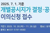 (뉴스인020 = 기자) 수원시 팔달구는 올해 7월 1일 기준 개별공시지가에 대해 오는 10월 30일 결정·공시하고 이의신청을 접수받는다고 밝혔다. 대상 토지는 2025년 1월 1일부터 6월 30일까지의 토지이동(분할, 합병 등)이 발생한 토지 총 159필지이며, 구청 토지관리과 및 해당 토지소재지 관할 동 행정복지센터, 부동산공시가격알리미 등에서 열람이 가능하다. 결정된 개별공시지가에 이의가 있는 토지소유자나 이해관계인은 오는 11월 28일까지 구청 토지관리과 및 동 행정복지센터에 비치된 이의신청서를 작성하여 직접 제출하거나 팩스 또는 우편으로 제출 가능하다. 인터넷을 통한 이의신청은 부동산공시가격알리미에서 신청할 수 있다. 이의신청이 제출된 토지는 인근 토지 또는 표준지 가격과 균형을 이루는지 의 여부 등을 재확인 후 감정평가사의 검증과 수원시 부동산가격공시위원회 심의를 거쳐 최종 결정 사항을 신청인에게 통지할 예정이다. 이에 팔달구 관계자는 "시민들의 재산권을 보호할 수 있도록 신뢰성 높은 개별공시지가 산정에 최선을 다하겠다."라고 말했다.