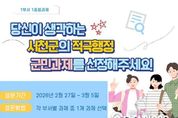 (뉴스인020 = 김성길 기자) 서천군은 군정 비전의 달성과 군민 체감 성과 창출을 위해, 군민이 직접 부서장 중점과제를 선정하는 투표를 실시한다. 이번 투표는 각 부서에서 자체 선정한 부서장 직무성과평가 과제를 대상으로 2월 27일부터 3월 5일까지 ‘소통24’에서 참여할 수 있다. 서천군에 관심 있는 누구나 참여 가능하며, 후보 과제 중 하나를 선택하는 방식으로 진행된다. 온라인 투표 점수(50%)와 오프라인 심사 점수(50%)의 결과를 합산해 ‘1부서 1중점과제’를 최종 선정하며, 이후 해당 과제를 집중적으로 관리할 계획이다. 황인신 기획예산담당관은 “군민이 직접 부서장 중점과제를 선정함으로써 군정에 대한 공감대가 형성되는 계기가 되길 바란다”며 “서천군을 대표하는 핵심 중점과제가 선정될 수 있도록 군민 여러분의 많은 관심과 참여를 부탁드린다”고 전했다.
