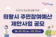 (뉴스인020 = 김성길 기자) 의왕시가 시민이 예산 편성 과정에 직접 참여하여 지역에 필요한 사업을 제안하는 ‘2026년 주민참여예산제’운영에 본격 나선다. 이번 주민참여예산의 총규모는 약 50억 원으로, 시 일반회계 예산의 1% 범위 내에서 편성된다. 특히 올해 공모에서는 ‘청년·청소년 대상 사업’과 ‘안전사고 예방 관련 사업’을 신규 우선 지원 대상으로 선정할 예정으로, 온라인 플랫폼 ‘주민이(e)참여’를 활용해 시민들의 사업 기획 및 제안 접근성을 대폭 높였다. 사업 제안은 3월 3일부터 5월 29일까지 받으며, 의왕시민은 물론 관내 직장인과 학생 누구나 참여할 수 있다. 공모 분야는 시 전체를 대상으로 하는 ‘시 정책사업’과 동 단위 불편 사항을 해소하기 위한 ‘지역현안사업’으로 나뉜다. 신청은 ‘주민이(e)참여’또는 시 홈페이지를 통해 온라인으로 하거나, 의왕시청(시청로 11) 기획예산과 및 각 동 주민센터의 방문·우편으로 가능하다. 김성제 시장은 “주민참여예산제는 우리 동네의 변화를 시민이 직접 만들 수 있는 소중한 기회”라며,“청년과 안전 분야를 비롯해 시민 들의 참신하고 실효성 있는