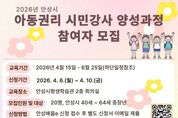 (뉴스인020 = 김성길 기자) 안성시는 아동친화도시로서 아동권리 인식 확산과 시민강사 양성을 위해 '아동권리 시민강사 양성과정' 참여자를 모집한다. 이번 과정은 아동권리에 대한 지역사회 인식을 확산하고, 관련 교육을 수행할 시민강사를 양성함과 동시에 중장년층의 사회참여 기회를 확대하기 위해 마련됐다. 교육은 2026년 4월 15일부터 6월 25일까지 운영되며, 총 11회차에 걸쳐 집합교육과 자율학습을 병행하여 진행된다. 모집 대상은 안성시에 거주하는 40세부터 64세까지의 중장년 시민 20명이다. 교육신청은 4월 6일부터 10일까지 안성시평생교육통합플랫폼(안성배움e)를 통해 접수한 후, 별도의 신청서를 이메일로 제출하면 된다. 교육대상자는 신청서를 바탕으로 참여 의지와 지원동기 등을 종합적으로 평가해 선발할 예정이다. 교육과정은 ▲아동권리 및 인권 기초 이해 ▲유엔아동권리협약의 이해 ▲긍정적 훈육 ▲아동인권 교육 프로그램 설계 등 이론과 실습을 병행하는 체계적인 내용으로 구성된다. 수료자는 민간자격인 ‘아동인권옹호전문가 2급’ 자격시험에 응시할 수 있으며, 향후 관내 초·