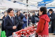 (뉴스인020 = 김성길 기자) 진교훈 서울 강서구청장이 5일 마곡광장에서 열린 ‘설맞이 농특산물 직거래장터’를 찾았다. 이날 진 구청장은 장터 내 점포 곳곳을 들려 임실치즈, 밀양딸기 등 지역 농특산물을 직접 구입하고 상인들과 장을 보러 나온 주민들에게 다가가 친근하게 새해 인사를 나눴다. 설맞이 직거래장터는 오는 6일(금)까지 계속된다. 운영시간은 오전 10시부터 오후 6시까지다. 장터에는 임실군, 상주시, 태안군, 강릉시, 여수시, 함안군, 순천시, 정읍시, 괴산군, 완주군, 평창시, 남원시, 밀양시, 청양군, 논산시 등 15개 지자체에서 39개 업체가 참여했으며, 각 지역의 다양한 농특산물을 시중보다 저렴하게 구입할 수 있다. 특히, 장터에선 강서구 특산품인 ‘경복궁 쌀’과 이를 원료로 만든 ‘나루생막걸리’도 함께 선보여 방문객들의 발길을 사로잡았다. 진교훈 구청장은 “장터에 나오셔서 각 지역의 농특산물을 합리적인 가격으로 구매해 보시길 바란다”고 말했다.