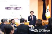 (뉴스인020 = 김성길 기자) 경상남도는 23일 도청 도정회의실에서 2025년도 하반기 퇴임식을 개최하고 오랜 기간 도정 발전에 헌신한 공직자들의 영예로운 퇴임을 기념했다. 이 자리에는 박완수 도지사, 퇴직공무원과 가족, 노동조합 및 동료 직원 등 120여 명이 참석해 퇴직자들의 노고를 격려하고 새로운 앞날을 응원했다. 행사는 식전 공연을 시작으로 공로패·감사패 수여, 퇴직자들의 소회와 동료 직원들의 응원을 담은 영상 시청, 후배 직원들의 축가 등으로 진행됐다. 퇴직자들은 소감을 통해 그간 묵묵히 지지해 준 가족에게 감사를 전하고, 함께 근무한 후배 공직자들에게는 경남 발전을 위해 계속 정진해 달라는 당부의 말을 건넸다. 박완수 도지사는 축사를 통해 “30년 이상 공직에 몸담으며 도민을 위해 헌신해 오신 여러분의 노고에 도민을 대표해 진심으로 감사드린다”며 “여러분이 남긴 발자취와 노력은 경남 도정의 역사로 남아 후배 공직자들에게 오래 기억될 것”이라고 말했다. 이어 “여러분의 헌신 뒤에는 늘 묵묵히 지지해 준 가족의 희생과 헌신이 있었다”며 “특히 바쁜 공직 생활 속에서도 가정을 지켜온 가족들에