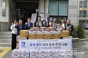 (뉴스인020 = 기자) 수원시 권선구 입북동 행정복지센터는 지난 29일, 추석 명절을 맞아 관내 저소득가정에 온누리상품권 및 후원 물품을 전달하는 ‘추석맞이 이웃돕기 후원물품 전달식’ 행사를 진행했다. 이날 전달식에서는 △지역사회보장협의체 △단체장협의회 △서재명(방위협의회 위원장) △새마을문고 △통장협의회 △새마을지도자협의회 △주민자치회 △서호새마을금고를 비롯하여 개인 후원자들이 기부한 후원 물품으로 가득 차 풍요롭고 훈훈한 명절 분위기를 조성했다. 이경영 동장은 “경제적으로 어려운 시기에도 관내 취약계층을 위해 한결같은 온정과 관심을 베풀어 주신 민간기관과 단체, 개인 후원자분들께 감사드린다”라며 “소외되는 이웃 없이 입북동 주민 모두가 행복한 추석 명절 보내시길 바란다”라고 말했다. 한편 입북동 행정복지센터는 복지사각지대를 발굴하여 긴급지원 및 사례관리 대상자 연계 등 지역사회에 소외된 이웃에 대한 관심으로 다양한 활동을 펼쳐 나가고 있다.