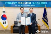 (뉴스인020 = 김성길 기자) 경상국립대학교는 3월 31일 오전 11시 대학본부 3층 접견실에서 자연과학대학 수학물리학부 이종진 교수의 대학발전기금 전달식을 개최했다. 이종진 교수는 이날 대학 발전을 위해 1000만 원을 기탁했다. 이로써 이 교수의 총 기부 금액은 1250만 원에 달한다. 이날 행사에는 경상국립대학교 권진회 총장, 이병현 연구부총장, 김경수 국제협력부처장, 황정숙 국제협력과장 등 대학 관계자와 기부자인 이종진 교수, 김영순 자연과학대학장 등이 참석해 자리를 빛냈다. 이종진 교수는 2004년 서울대학교에서 물리학 박사학위를 취득한 후, 삼성전자 반도체사업부와 GIST, KAIST 연구교수를 거쳐 2014년 경상국립대학교 교수로 임용됐다. 특히 2024년부터 2025년까지 자연과학대학장을 역임하며 단과대학의 발전에 헌신했다. 이번 기탁은 이 교수가 학장 재임 시절 느꼈던 단과대학 차원의 유연한 예산 확보 필요성을 몸소 실천에 옮겼다는 점에서 의미가 깊다. 기부금은 자연과학대학의 행정 수요 및 교육 환경 개선을 위해 사용될 예정이다.