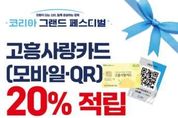 (뉴스인020 = 김성길 기자) 고흥군은 전국 대규모 할인 축제인 ‘코리아 그랜드 페스티벌’을 기념해 10월 29일부터 11월 9일까지 12일간 모바일 고흥사랑상품권 20% 적립 이벤트를 진행한다고 밝혔다. ‘코리아 그랜드 페스티벌’은 내수 회복을 위해 정부 10개 부처 합동 주관으로 유통업계와 소상공인 등 3만여 업체가 참여하는 국가 단위 대규모 소비축제로, 10월 29일부터 11월 9일까지 12일간 진행된다. 고흥군은 전국적으로 진행되는 코리아 그랜드 페스티벌에 발맞춰 지역 소비 및 상권 활성화를 위해 모바일 고흥사랑상품권 적립률을 5% 상향해 총 20% 특별 적립 이벤트를 마련했다. 행사 기간 모바일 고흥사랑상품권을 결제하면 결제금액의 20%를 적립할 수 있으며, 적립된 캐쉬백은 가맹점에서 일반 상품권과 동일하게 사용할 수 있다. 모바일 고흥사랑상품권은 ‘지역상품권 chak’ 앱을 통해 충전하며, 고흥사랑카드 또는 chak 어플 QR코드를 이용해 가맹점에서 사용할 수 있다. 군은 이번 20% 특별 적립 이벤트가 11월 6일부터 9일까지 4일간 진행되는 제5회 고흥유자축제의 성공에도