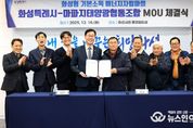 (뉴스인020 = 김성길 기자) 화성특례시는 16일 시청 중앙회의실에서 마파지태양광협동조합과 ‘화성형 기본소득 에너지자립마을 조성을 위한 업무협약(MOU)’을 체결했다. 이날 협약식에는 정명근 화성특례시장을 비롯해 김진원 마파지태양광 협동조합장 등이 참석해, 주민주도형 재생에너지 기반 에너지자립마을 조성사업의 추진에 상호 협력하기로 했다. 이번 사업은 국유지를 활용해 주민이 사업비 전액을 부담해 100% 주민주도형 ‘에너지자립마을’을 조성하는 경기도 최초 사례로, 재생에너지 수익을 마을 복지와 기본소득으로 연계하는 ‘화성형 기본사회’ 정책의 첫 시범 모델이다. 마파지태양광협동조합은 석포6리 주민 25가구가 공동 운영하는 협동조합으로, 사업주체로서 장안면 석포리 823번지 제방 국유지에 415kW 규모의 태양광 발전설비를 설치한다. 사업비는 총 5억 2천만 원으로 전액을 주민이 자부담한다. 시는 협약에 따라 인허가, 관계기관 협의, 제도 검토 등 사업 추진에 필요한 행정적·제도적 지원을 담당하고, 에너지자립마을이 안정적으로 운영될 수 있도록 정책적 기반 마련에 협력한다. 또한 재생에너지