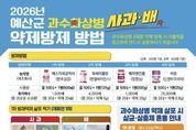 (뉴스인020 = 김성길 기자) 예산군농업기술센터는 식물방역법상 법정 금지병인 과수화상병 확산을 막기 위해 관내 사과·배 재배 농가를 대상으로 11일부터 18일까지 1∼4차 사전방제 약제를 무상 공급한다. 이번에 공급되는 사전방제 약제는 총 4종으로 △개화 전 1차 방제 ‘에스지세균박사’ △개화기 2차 방제 ‘옥싸이클린’ △3차 방제 ‘배차엔진품’ △4차 방제 ‘비온’이다. 효과적인 방제를 위해 1차 방제약제는 사과의 경우 신초 발아 전에, 배는 꽃눈 발아 직후에 살포해야 하며, 개화기 2·3·4차 방제는 기상 관측 정보를 바탕으로 읍·면별 꽃 감염 위험도를 예측해 위험도가 높게 나타나는 시기에 약제를 살포하는 것이 중요하다. 농업기술센터는 방제 효과를 높이기 위해 적절한 방제 시기를 농가에 문자로 안내할 계획이다. 아울러 과수화상병 확산을 막기 위해 방제 적기에 약제를 반드시 살포해야 하며, 발병 시 손실보상 관련 증빙을 위해 농가는 약제 방제 확인서와 살포한 약제 봉지를 1년간 보관해야 한다. 또한 농업기술센터는 ‘2026년 사과 방제력 및 화상병 약제 살포 시기 안내’ 홍보물을 함