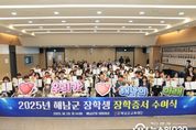 (뉴스인020 = 김성길 기자) 재단법인 해남군교육재단(이사장 명현관)은 지난 28일 해남군청 대회의실에서 2025년 해남군 장학생 장학증서 수여식을 가졌다. 수여식에서는 2025년 각 분야 해남군 장학생으로 선발된 우수학생 474명에게 총 4억 5,500만원의 장학금을 지원한다. 이날 수여식에는 장학생 대표 78명과 관계자들이 참석하여 자리를 빛냈다. 식전 공연으로 예체능 분야 장학생으로 선발된 한국무용창작팀과 태권도 시범팀이 수준 높은 공연을 선보이기도 했다. 2025년도 장학금 대상자는 성적우수 장학생 75명, 기능영재 장학생 30명, 희망장학생 71명, 예체능, 과학 등 특기자 장학생 117명, 기타 장학생 10명 등이다. 특히 초등학력인정학교 만학도 23명에게 배움의 도전을 응원하는 장학금과 타지역 전학, 지역사회공헌, 농어업인 육성, 꿈드림 등 50명에게도 맞춤형 장학금이 지원됐다. 대학생 98명에게도 생활지원금 성격의 장학금이 지원됐다. 이날 수여식에서 명현관 군수는“장학금은 여러분의 꿈과 열정을 해남군민 모두가 응원하는 증표”라며“학생들이 경제적 걱정없이 학업에 전념하여