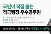 (뉴스인020 = 김성길 기자) 경기도교육청이 공공의 이익을 높인 적극행정 우수공무원 선정을 위해 2025년도 하반기 대국민 심사를 실시한다. 도교육청은 창의적이고 능동적인 행정을 펼친 각 기관의 추천 사례를 접수해 1차 예선심사에서 우수사례 15건을 선정했다. 이를 대상으로 1월 26일부터 30일까지 ‘소통24’누리집에서 국민이 참여하는 온라인 투표 방식의 대국민 심사를 진행한다. 참여자는 1인당 3건의 우수사례에 투표할 수 있다. 본선 진출자는 예선심사 점수 60%와 국민투표 결과 40%를 합산해 최종 결정된다. 선발된 공무원에게는 교육감 표창과 포상금, 특별승급의 인사상 가점부여 등 다양한 특전을 제공할 계획이다. 이번 선발은 단순한 성과 평가를 넘어 적극행정의 모범사례를 널리 알리고, 공직사회 전반에 적극행정 문화를 확산시키는 의미가 있다. 특히 국민이 직접 우수공무원을 선정함으로써 정책 수요자의 관점이 반영된다는 점에서 공정하고 투명한 심사 절차가 마련될 것으로 기대된다. 도교육청은 앞으로도 국민이 체감하는 변화를 만들어낸 공무원의 노력을 널리 알리고, 적극행정을