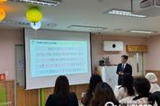 (뉴스인020 = 김성길 기자) 동보초등학교(교장 최덕기)는 1월 22일, 공립행복하나어린이집(원장 이수연) 학부모 12명을 대상으로 어초음이음교육의 일환으로 1학년 신입생 학부모 연수를 실시했다. 이 연수에 강사로 나선 최덕기 교장은 이번 연수에 제목을 “두근 두근 1학년 첫걸음”으로 정하고 1학년의 하루 생활 알아보기, 1학년으로 자라나기, 가정에서 도와주는 방법을 이야기했다. 초등학교는 어린이집보다 훨씬 규칙적인 생활이 요구됨으로 일찍 자고 일찍 일어나기, 화장실 혼자 이용하기, 급식 연습(젓가락 사용법, 편식 교정)을 할 것을 당부했고, 한글 교육은 1학년 1학기에 ‘한글 책임 교육’이 진행되지만 교실 이름이나 알림장을 확인하기 위해 기초적인 읽기 능력을 갖추는 것이 좋다고 말했다. 이번 연수를 통하여 학부모들은 1학년에서 이루어지는 전반적인 내용을 알게 되어서 궁금증을 해결하게 됐다. 최덕기 교장은 “행복하나어린이집과 어초이음교육을 실시하게 되어 매우 기쁘게 생각한다”며, “2월 10일(화)에 있는 어린이집 유아들의 동보초등학교 방문때에도 최선을 기쁘게 맞이하고 최선을 다해서 설명하겠다”고 말했다.