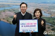 (뉴스인020 = 김성길 기자) 전라남도 나주시는 지난 29일 ㈜일성기업 이순옥 대표(오른쪽)가 고향사랑기부제에 500만 원을 기탁했다고 밝혔다. 이순옥 대표는 고향사랑기부제가 시행된 2023년부터 3년 동안 매년 500만 원씩 총 1500만 원을 기부하며 지속적인 사랑 나눔을 실천하고 있다. ㈜일성기업은 나주시 반남면에서 옹벽 블록과 가로수 보호판 등을 생산하는 기업으로 무더운 여름철에는 삼계닭을 기부하는 등 지역 어르신들의 건강을 돌보기 위한 나눔 문화 확산에도 앞장서 왔다. 이순옥 대표는 “꾸준한 나눔을 통해 지역사회와 상생하며 성장하는 기업으로 자리매김하고 싶다”며 “기부금이 지역 발전에 소중히 쓰이기를 바란다”고 밝혔다. 윤병태 나주시장은 “3년 연속 고향사랑기부제에 동참해 나눔의 뜻을 실천하는 이순옥 대표께 깊이 감사드린다”며 “기탁해 주신 기부금은 시민 복리 증진과 나주의 발전을 위해 적극 활용하겠다”고 말했다. 한편 고향사랑기부제는 개인이 자신의 주소지를 제외한 지방자치단체에 기부할 수 있는 제도로 올해부터 개인별 연간 기부 한도가 2천만 원으로 확대됐다.