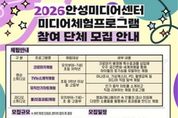 (뉴스인020 = 김성길 기자) 안성미디어센터는 지역 어린이와 청소년이 미디어를 쉽고 재미있게 접할 수 있도록 ‘2026년 미디어체험프로그램’에 참여할 관내 어린이집, 유치원, 학교 등 단체를 모집한다고 밝혔다. 이번 프로그램은 아이들이 영상과 소리를 직접 다뤄보며 미디어의 원리를 이해하고 창의력과 표현력을 키울 수 있도록 기획된 체험형 교육이다. 영상·라디오 스튜디오를 활용해 진행되며, 공간·대상별 직업체험과 미디어 놀이 중심의 구성으로 어린이와 청소년이 즐겁게 참여할 수 있는 것이 특징이다. 2026년에는 ▲크로마키 체험(우주·세계여행 영상 촬영) ▲TV 뉴스 제작 체험 ▲뮤직 차트 방송 제작 ▲폴리(효과음) 체험 등 다양한 프로그램이 마련된다. 각 프로그램은 연령대에 맞춰 구성되며, 방송 직업 탐색과 실습 중심 활동을 통해 참여자의 흥미와 몰입도를 높인다. 모집 대상은 안성시 관내 6세 이상 어린이부터 초·중·고등학생이 포함된 어린이집, 유치원, 학교, 기관 등 단체로, 최소 10명에서 최대 30명 내외의 15개 팀을 선착순 모집한다. 체험비는 전액 무료이며, 프로그램은 오는 2월부터 5월까지 매주 수요일