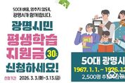 (뉴스인020 = 김성길 기자) 광명시가 50대 중장년 시민의 배움 기본권 보장을 위해 올해도 평생학습지원금 지원을 이어간다. 시는 오는 3월 3일부터 13일까지 11일간 ‘2026년 광명시민 평생학습지원금’ 신청을 받는다고 26일 밝혔다. 광명시민 평생학습지원금은 생애 전환기를 맞은 50대 시민이 나이·소득·배경과 관계없이 배움을 지속할 수 있도록 생애 1회 1인당 30만 원의 평생학습이용포인트를 지원하는 사업이다. 시민 스스로 자신의 삶과 필요에 맞는 학습을 선택하도록 돕는 것이 핵심 목적이다. 박승원 광명시장은 “배움은 선택이 아닌 누구에게나 보장돼야 할 기본권”이라며 “시민이 나이나 환경의 제약 없이 언제든지 배움을 이어갈 수 있도록 평생학습 기반을 더욱 탄탄히 만들어가겠다”고 밝혔다. 신청 대상은 1967년 1월 1일부터 1976년 12월 31일 사이에 출생한 50대 광명시민이다. 광명시에 1년 이상 계속 거주했거나, 거주기간을 합산해 5년 이상 거주하고 있어야 한다. 시는 총 2천500명을 선정해 지원한다. 59세(1967년생)는 올해가 마지막 지원 대상임을 고려해 우선 선정