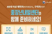 (뉴스인020 = 김나현 기자) 40대 이상 재직자(퇴직예정자), 구직자라면? 중장년내일센터와 함께 준비하세요! - 생애경력설계 프로그램 : 직업역량, 가치관 분석 등 미래 경력 대안 탐색 지원 - 전직스쿨 프로그램 : 변화 관리 및 취업·전직 가능성 제시 - 재도약 프로그램 : 구직의욕 고취 및 구직 스킬 향상 지원 - 다양한 중장년 정책 안내 : 일경험, 지원금, 일자리 등 정보제공 · 비용 부담 ZERO! 전액 무료! · 간편한 온라인 신청 가능! 전국 38개 중장년내일센터로 오세용!