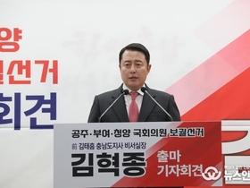 ▲김혁종은 공주·부여·청양의 더 큰 미래를 위해 국회의원 보궐선거에 출마 선언문 낭독 (뉴스인020 = 김성길 기자) 존경하는 공주·부여·청양 주민 여러분, 그리고 220만 충남도민 여러분, 언론인 여러분, 반갑습니다. 김혁종입니다. 오늘 저는 제 고향 공주·부여·청양의 더 큰 미래를 위해 새로운 책임을 맡고자 이 자리에 섰습니다. 저는 민선8기 약 3년 8개월 동안 충남도지사 비서실장으로 일했습니다. 도정의 최일선에서 김태흠 도지사를 보좌하며 충남이 어떻게 변화하고 도약하는지를 가장 가까이에서 지켜봤고, 또 그 과정에 직접 참여했습니다. 그 시간은 저에게, 행정의 책임이 무엇인지, 그리고 정치가 어떤 무게를 가져야 하는지를 깊이 배우는 시간이었습니다. 여러분도 체감하고 계시겠지만 민선8기 충남도정은 분명한 변화와 성과를 가고 있습니다. 정부 예산은 민선 7기 대비 매년 약 1조 원씩 늘어나 충남은 이제 12조 국비 시대를 열었습니다. 기업 투자 유치도 46조 원을 넘어섰습니다. 이것은 단순한 숫자가 아니라 충남의 산업과 경제 지형을 바꾸는 큰 변화입니다. 지금 충남은 분명히 도약하고 있습니다. 저는 그 성장과 변화의 중심에도정의 흐름을 가장 가까이에서 경험