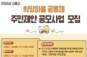 (뉴스인020 = 김성길 기자) 시흥시는 주민이 주도하는 마을공동체 활성화를 위해 ‘2026년 시흥시 희망마을공동체 주민제안 공모사업’을 추진하고, 시민들의 이해를 돕기 위한 권역별 사전설명회를 다음 달 남부권과 중ㆍ북부권으로 나눠서 개최한다. 관련 사업은 이웃 간 소통과 협력을 바탕으로 주민 스스로 지역문제를 해결하고, 지속 가능한 마을공동체를 형성할 수 있도록 지원하는 사업이다. 시는 주민들의 자발적인 참여와 창의적인 아이디어를 통해 다양한 마을공동체 활동이 발굴될 것으로 기대하고 있다. 공모 신청 기간은 2월 11일부터 13일까지이며, 공모사업에 대한 이해를 높이기 위해 마련된 권역별 사전설명회는 남부권과 중부·북부권으로 나눠 진행된다. 남부권 설명회는 2월 3일 오후 3시 정왕동평생학습관 303호에서 열리며, 중부ㆍ북부권 설명회는 2월 6일 오전 10시 30분 시청 별관 4층 글로벌3에서 개최된다. 사전설명회에서는 공모사업의 추진 방향과 지원 내용, 신청 자격, 사업계획서 작성 방법 등을 안내하고, 질의응답을 통해 참여자들의 궁금증을 해소할 예정이다. 마을공동체 활동에 관심 있는 시민이라면 누구나 별도