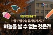 (뉴스인020 = 김나현 기자) 하늘을 날 수 없는 것들은? ■ 전면 통제대상 · 모든 항공기 이륙 금지 (비행 중 항공기 → 3km 이상 상공에서 대기) · 헬기 · 경량항공기 그리고 초경량 비행장치(드론 포함) 모두 STOP! * 예외: 비상·긴급 항공기 영어 듣기평가에 방해가 되는 '항공기소음 최소화' ■ 언제 통제되나요? 11월 13일(목) 13:05~13:40(총 35분) ※ 듣기평가 전·후 5분 포함 수험생에게 조용한 하늘을! 국민 여러분의 협조를 부탁드립니다.