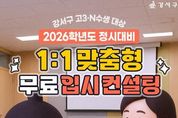 (뉴스인020 = 김성길 기자) 서울 강서구가 2026학년도 대학 정시모집을 앞두고 관내 고등학교 3학년과 재수생, 학부모를 대상으로 ‘1대1 맞춤형 대입 진학 컨설팅’을 운영한다. 컨설팅은 오는 12월 20일부터 21일까지 이틀간 강서평생학습관(공항대로 615) 2층 강당에서 진행된다. 구는 정시모집 정보를 해석하고 전략을 수립하는 데 어려움을 겪는 학생과 학부모에게 실질적 도움을 제공하기 위해 이번 프로그램을 마련했다. 서울시교육청 대학진학지도지원단 소속 현직 교사 6명이 참여해 수험생의 학업 성향과 진로 목표를 분석하고 개인별 입시 전략을 제시한다. 상담은 오전 9시 30분부터 오후 2시 55분까지 총 6차로 운영되며, 1인당 40분씩 집중 상담이 진행된다. 수능 성적표와 진학 희망 자료 등을 토대로 학생별 강점과 지원 가능 대학 및 학과를 면밀히 분석해 최적의 입시 전략을 안내한다. 컨설팅은 총 72명을 대상으로 한다. 참여 신청은 오는 12월 9일 오전 10시부터 강서구청 누리집 통합예약시스템을 통해 선착순 접수한다. 접수가 완료되면 상담 일정이 문자로 개별 통보되