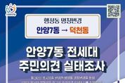 (뉴스인020 = 김성길 기자) 행정동 명칭 변경 사업을 추진 중인 안양시가 만안구 안양7동의 행정동 명칭 변경을 위해 올해 12월 1일부터 내년 1월 31일까지 해당 동 전 세대를 대상으로 주민의견 실태조사를 실시한다고 1일 밝혔다. 이번 주민의견 실태조사는 안양7동의 행정동 명칭을 ‘덕천동’으로 변경하는 것에 대한 찬반 의견 조사다. 안양7동에 거주하는 전체 세대 중 60% 이상이 참여하고, 참여 세대의 과반수가 찬성할 경우 시는 명칭 변경을 추진할 예정이다. 조사방법은 올해 12월 1일부터 2026년 1월 31일까지 시 홈페이지를 통해 비대면 조사를 진행하고, 12월 18일부터 2026년 1월 31일까지 안양7동 행정동명칭변경추진위원회가 각 세대 방문조사를 병행하게 된다. 덕천(德泉)동은 어린이들이 샘물 솟듯이 씩씩하게 자라서 나라에 큰 일꾼이 되기를 바라는 뜻으로, 큰 덕(德)에 샘 천(泉)을 취해 붙여진 옛 지명이다. 시는 이에 앞서 지난 9월 12일부터 9월 30일까지 안양7동 주민들을 대상으로 행정동 명칭에 대한 선호도 조사를 진행했고, 조사에 참여한 646세대의 주민 중