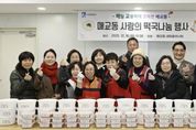 (뉴스인020 = 기자) 수원시 팔달구 매교동 새마을부녀회는 지난 16일 연말을 맞아 매교동 행정복지센터 대회의실에서 관내 홀몸어르신 및 저소득층을 위한 ‘사랑의 떡국 나눔 행사’를 진행했다. 이날 새마을부녀회 회원들은 새해를 앞두고 따뜻한 마음을 담아 떡국 밀키트 등 음식을 정성껏 준비해 관내 홀몸어르신과 저소득층 50가구에 직접 전달하며 이웃사랑을 실천했다. 이미정 매교동 새마을부녀회장은 “정성껏 준비한 떡국이 추운 겨울을 보내는 이웃들에게 힘이 되길 바란다”며 “앞으로도 지역의 어려운 이웃들을 위한 나눔 활동을 꾸준히 이어가겠다”고 말했다. 이지효 매교동장은 “항상 지역사회를 위해 애써주시는 새마을부녀회 회원들께 감사드린다”며 “이웃들에게 전달된 따뜻한 마음이 겨울을 보내는 데 도움이 되길 바란다”고 전했다.