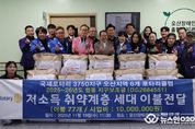 (뉴스인020 = 김성길 기자) 오산장애인종합복지관은 지난 19일 국제로타리 3750지구 오산지역 6개 로타리클럽의 합동 지구보조금 사업을 통해 1,000만 원 상당의 겨울 이불을 후원받아 복지관 세탁지원서비스를 이용하고 있는 장애인 가정에 전달했다고 밝혔다. 이날 전달식에는 국제로타리 3750지구 오산지역 6개 로타리클럽과 오산시자원봉사센터 등 지역 내 관계기관이 함께 참여했다. 후원품은 오산시에 거주하며 세탁지원서비스를 이용하는 장애인 가정 77가구에 전달됐다. 특히 로타리클럽 회원들은 후원품을 단순히 전달하는 데 그치지 않고, 각 가정을 직접 방문해 겨울 이불을 전달하며 안부를 묻고 따뜻한 마음을 나누는 뜻깊은 시간을 가졌다. 성도규 오산장애인종합복지관 관장은 “국제로타리 3750지구 오산지역 6개 로타리클럽의 따뜻한 관심과 후원 덕분에 장애인 가정이 보다 따뜻한 겨울을 보낼 수 있게 됐다”며 “앞으로도 지역사회와 함께 다양한 나눔 활동을 지속적으로 확대해 나가겠다”고 말했다. 오산장애인종합복지관은 앞으로도 장애인 가정의 건강한 일상과 복지 향상을 위해 다양한 지원과 나눔 활동을 이어갈 계획이