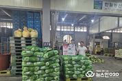 (뉴스인020 = 김성길 기자) 안산시 농수산물도매시장은 지난 2일 도매시장 내 중도매인인 반월농산(대표 노영현)으로부터 추석 명절을 맞이해 배추 1,800kg을 기탁받았다고 3일 밝혔다. 안산시농수산물도매시장은 2015년부터 푸드뱅크 사업을 통해 도매시장법인, 중도매인으로부터 잉여 농산물(채소, 과일 등)을 후원받아 지역사회 취약계층에 도움을 주고 있다. 노영현 대표는 “명절을 맞이해 경기 불황과 높은 물가로 어려움을 겪고 있는 이웃들에게 조금이나마 도움이 됐으면 한다”며 “지속적으로 소외계층을 돕는 일에 꾸준히 동참하겠다”고 말했다. 이범열 농업기술센터 소장은 “우리 지역의 어려운 이웃들과 상생하는 마음으로 후원을 해주신 중도매인에게 감사드린다”며 “앞으로도 취약계층과 동행하고 나눔 문화를 실천할 수 있도록 노력하겠다”고 말했다.