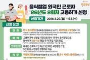 (뉴스인020 = 김나현 기자) 음식점업 외국인 근로자 '26년도 2회차 고용허가 신청 ■ 신청기간: 2026.4.20.(월)~5.6.(수) ■ 신청 요건 · 업종 한식 음식점업(한국표준산업분류 상 5611), 외국식 음식점업(5612) *고용보험 시스템에 등록된 업종 기준(실제 영업을 영위하는지 여부 등은 '사업자등록증' 또는 '영업신고증'으로 증빙) *기관구내식, 출장이동식, 기타간이, 주점, 비알코올 음료점은 미허용 · 업력 고용허가서 신청일 기준으로 한식·외국식 음식점업으로 연속하여 5년 이상 영업 유지(휴업 기간 포함) *부가가치세 과세표준증명원상 과세기간 또는 사업자등록증상 '개업년·월·일'로 확인 · 고용인원 내국인 근로자 1인 이상 5인 미만 사업장은 1명, 5인 이상 사업장은 2명까지 가능 *내국인근로자(피보험자) 수는 고용부에서 고용보험시스템 전산 확인 · 직무 주방보조원(한국표준직업분류 상 95220) 및 음식 서비스 종사원(45311) *현장 여건에 맞게 직무범위 탄력적 운영 가능 · 문의 - 고용노동부 상담센터 ☎1350 · 신청 - 사업