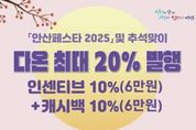(뉴스인020 = 김성길 기자) 안산시는 오는 10월 한 달간 안산 지역화폐 ‘다온’ 이용자에게 최대 20%의 혜택을 제공하는 특별 이벤트를 진행한다고 23일 밝혔다. 이번 행사는 ‘안산페스타 2025 상권축제’와 추석 명절을 맞아 골목상권과 지역경제에 활력을 불어넣기 위해 마련됐다. 10월 한 달간 다온카드 이용자에게는 결제금액의 10%에 해당하는 적립금 환급(캐시백)이 진행된다. 캐시백 지급 한도는 최대 6만 원으로, 최대 60만 원까지 구매한 금액에 대해 혜택을 적용받을 수 있다. 다만, 캐시백은 본인 충전금 결제 금액에서만 지급된다. 인센티브나 정책수당, 민생회복 소비쿠폰 등 기타 혜택 금액은 캐시백 대상에서 제외된다. 또한, 예산 소진 시 캐시백은 조기에 종료될 수 있으며, 환급받은 금액은 지급일로부터 6개월 이내 사용해야 한다. 만약, 시민이 다온카드 최대 충전 한도인 60만 원을 충전하면 10% 인센티브와 함께 충전 금액 결제에 따른 10% 캐시백을 받아 최대 20%(12만 원)의 혜택을 제공받을 수 있다. 아울러, 안산지역화폐 ‘다온’은 오는 11월 30일까지 기존 가맹점뿐만 아니라