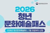 (뉴스인020 = 김나현 기자) ■ 2026 청년문화예술패스, 2월 25일부터 신청 - 19~20세 청년 최대 20만 원 청년 문화예술패스는 19~20세 청년*이 협력 예매처에서 공연, 전시, 영화 예매에 즉시 사용할 수 있는 이용권입니다. * 2026년 대상은 2006~2007년생 서울, 경기, 인천 등 수도권 지역 거주 청년→15만 원 비수도권 지역 거주 청년→20만 원 기존에는 사전에 한 개의 예매처만 선택해 이용할 수 있었는데요. 올해부터는 7개 예매처에서 공연과 전시, 영화 등 보고 싶은 작품의 관람권을 예매할 수 있습니다. NOL ticket, 티켓링크, yes24, Melon티켓, MEGABOX, 롯데시네마, CGV ■ 지원대상 대한민국 19~20세 청년 총 28만 명 생애 최초 1회 지원 ■ 신청기간 2026년 2월 25일~6월 30일 신청순 발급(지역별 예산 소진 시 해당 지역 발급 마감) ■ 신청방법 청년문화예술패스 누리집 회원가입 후 온라인 신청 ■ 문의 청년문화예술패스 고객지원센터 ☎1577-1968