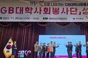 (뉴스인020 = 김성길 기자) 경상북도는 26일 경북여성가족플라자에서 ‘2025 GB(경북)대학사회봉사단 성과평가회’를 개최하고, 2025년 한 해 동안의 지역사회 곳곳에서 자원봉사로 활약한 GB대학사회봉사단의 성과를 공유하는 시간을 가졌다. 행사에는 GB대학사회봉사단 자원봉사자 300여 명과 김진현 경북도 안전행정실장, 최재혁 GB대학사회봉사단 단장(경북전문대학교 총장), 장유석 도종합자원봉사센터 이사장, 참여대학 총장을 비롯한 시군 자원봉사센터 관계자가 참석했다. 이날 행사에서는 2025년 모범적인 자원봉사활동으로 활약을 펼친 단원 61명은 경북도지사상, 경북도의장상, 경북교육감상, GB대학사회봉사단장상, 경상북도종합자원봉사센터 이사장상 등을 받았다. 이어서 GB대학사회봉사단과 시군 자원봉사 센터가 협업한 우수 자원봉사 사례발표 경진대회가 진행됐다. 이번 경진대회에는 구미대학교, 대경대학교, 선린대학교, 경북전문대학교, 경북보건대학교, 경북과학대학교 등 총 6개 대학이 참여해 올해 펼친 사업 성과와 우수 활동을 발표하며 실력을 겨루었다. 김진현 경상북도 안전행정실장은 “지역사회를 위해 시간과