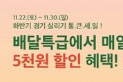 (뉴스인020 = 김성길 기자) 경기도 공공배달앱 배달특급이 2025년 하반기 경기살리기 ‘통 큰 세일’에 합류한다. 경기도주식회사는 오는 30일 일요일까지 배달특급 전체 회원을 대상으로 배달특급 입점 가맹점에서 사용할 수 있는 5천원 할인 쿠폰을 제공한다고 23일 밝혔다. 해당 프로모션은 배달특급 애플리케이션 내 상반 ‘통 큰 세일’ 배너를 통해 쿠폰을 내려받아 결제 단계에서 사용할 수 있다. 예산 소진 시까지 회원당 매일 1회 내려받아 사용 가능하다. 배달특급은 지난 상반기에도 경기도와 경기도시장상권진흥원이 추진한 ‘2025년 상반기 경기 살리기 통 큰 세일’에 참여한 바 있다. 당시 배달특급은 경기도 지역화폐가 연동되는 공공배달앱 3사(배달특급, 땡겨요, 먹깨비) 가운데 가장 먼저 할인 쿠폰을 소진시켰고, 가장 많은 30억 원의 거래액을 기록하며 소비자와 소상공인의 상생을 이끌어 낸 바 있다. 한편, 배달특급의 모든 이벤트는 해당 상단 배너 기능을 통해 확인 가능하며, 지역에 따라 할인 조건과 금액이 달라질 수 있어 사전 확인이 필요하다.