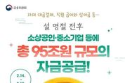 (뉴스인020 = 김나현 기자) 자재 대금결제, 직원 급여와 상여금 등… 설 명절 전후 소상공인·중소기업 등에 총 95조 원 규모의 자금공급! (2.14.~2.18.) - 중소·중견기업 ■ 특별대출, 보증 · 지원기간: ~3.5. · 신청방법: 산업은행, 기업은행, 신용보증기금 지점 상담 - 중소기업·소상공인 ■ 거래 기여도, 신용등급에 따라 은행권 금리우대 대출 · 지원기간: ~3.13. *4대 시중은행 기준(타 은행은 보도자료 참고) · 신청방법: 은행 영업점 방문→설 명절 특별자금지원 상담 - 전통시장 상인 ■ 명절 자금 지원 · 내용 : 연 4.5% 이내 금리 / 최대 1000만 원 대출 · 지원기간: ~2.13. · 신청방법: 우수시장(기초지자체 추천) 소속 상인이 상인회에 신청