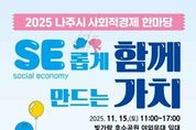 (뉴스인020 = 김성길 기자) 전라남도 나주시가 사회적경제기업의 지속 가능한 가치와 시민 참여를 함께 담은 축제의 장을 개최한다. 나주시는 오는 15일 빛가람동 호수공원 중앙무대에서 ‘2025 사회적경제 한마당’을 연다고 11일 밝혔다. 시는 이번 행사를 통해 사회적경제의 성과를 시민과 공유하고 기업 간 협력과 판로 확대를 지원함으로써 지역경제 활성화에 새로운 활력을 불어넣을 계획이다. 이번 행사는 사회적경제기업의 홍보와 지속 가능한 가치 확산을 목표로 마련됐으며 나주시 사회적경제기업 20개소가 참여해 시민과 함께하는 다양한 프로그램을 선보일 계획이다. 행사에서는 지역경제 발전에 기여한 유공자 표창식을 시작으로 사회적경제기업의 제품과 활동을 소개하는 홍보관, 어린이들이 즐길 수 있는 경제체험존, 시민 참여형 랜덤플레이 댄스와 문화 공연 등이 진행돼 사회적경제의 의미를 쉽고 즐겁게 체험할 수 있다. 특히 참여 기업들은 현장에서 직접 제품을 선보이고 시민들과 소통하며 사회적경제기업의 판로 확대와 브랜드 인지도 제고의 기회를 마련할 전망이다. 윤병태 나주시장은 “이번 사회적경제