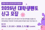 (뉴스인020 = 김성길 기자) 광명시청소년재단 청소년진로진학지원센터는 관내 중·고등학교 청소년 대상 학과 멘토링 운영을 위해 ‘2026년 대학생 멘토단(wave)’을 모집한다고 밝혔다. 대학생 멘토단(wave)은 대학생 멘토가 전공 및 진로 경험을 바탕으로 청소년에게 학과 정보, 전공 이해, 진학 준비 방향 등을 제공하는 프로그램으로, 학교 현장과 연계한 멘토링 활동을 통해 청소년의 진로·진학 역량 강화를 지원한다. 모집 대상은 4년제 대학교 재학생·휴학생 또는 대학원 재학생·휴학생(2026학년도 입학 예정자 포함)으로, 1년 이상 활동 가능한 대학생이면 지원할 수 있다. 선발된 멘토에게는 역량강화 교육이 제공되며, 멘토링 활동 참여 시 소정의 활동비 지급 또는 봉사시간 인정 등 참여 혜택이 지원된다. 신청은 2026년 2월 9일 12:00까지 구글폼을 통해 가능하며, 자세한 사항은 광명시청소년진로진학지원센터 홈페이지 내 모집 공고문을 통해 확인할 수 있다. 광명시청소년진로진학지원센터 박사라 센터장은 “이번 멘토단 운영을 통해 청소년에게는 실질적인 진학 정보와 멘토링 기회를 제공하고, 대학생에게는