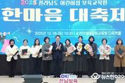 (뉴스인020 = 김성길 기자) 전라남도는 6일 순천만생태문화교육원에서 어린이집 보육교직원 한마음 대축제를 개최하고, 아이 키우기 좋은 전남 실현을 다짐했다고 밝혔다. 이번 행사는 전라남도어린이집연합회 주관으로 올 한해 아이들의 건강한 성장을 위해 헌신한 1만여 보육교직원의 노고를 격려하고 사기 앙양을 위해 진행됐다. 보육발전에 이바지한 원장, 보육교사 등 유공자 59명에게 도지사 표창이 수여됐으며, 헌신과 열정에 대한 감사의 마음을 전했다. 또한 참석한 보육교직원들은 부모가 안심하고 맡길 수 있는 질 높은 보육환경 조성을 골자로 하는 ‘아동권리존중 선언문’을 낭독하면서 아이 키우기 좋은 전남 실현을 다짐했다. ‘보육 대전환 시대를 선도하는 OK! 지금은 전남 보육’을 위해 최선을 다하자는 퍼포먼스도 펼쳤다. 이날 오후 순천지역 문화탐방 프로그램을 통해서는 보육교직원이 서로 교류하며 화합을 다지는 시간도 보냈다. 전남도지사는 “아이들이 밝고 건강하게 성장하고, 지역의 미래를 이끌 단단한 공동체가 되도록 만드는 주역이 보육교사”라며 “앞으로도 더 나은 보육환경을, 더 존중받는 보육문화를