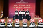 (뉴스인020 = 김성길 기자) 안산시는 지난 10일 (재)경기테크노파크 다목적실에서 관내 기업들과 ‘서비스로봇 업무협약·안산시 로봇산업 정책세미나’를 개최하고, 국내 최초로 캠퍼스형 자율주행 배달로봇 ‘개미’를 도입한다고 11일 밝혔다. 이날 행사는 ‘2025 로봇 인식확산 사업’의 일환으로 안산시의 로봇산업 육성 지원 방향을 공유하고 로봇 수요 기업의 지원 방안을 모색하기 위해 마련됐다. 행사에는 로봇공정 도입을 희망하는 관내 100여 개 기업과 안산로봇실무협의체 참여기관이 참여했다. 이번 로봇산업 정책세미나는 ▲로봇산업 현장간담회 ▲로봇기업 업무협약 ▲제조현장 로봇공정 사례 발표 ▲내년도 정부-경기도-안산시 로봇추진 사업설명회 ▲로봇공급기업 현장견학 등의 순으로 진행됐다. 이날 간담회에서는 관내 기업들이 로봇공정을 도입하면서 겪는 애로사항을 청취하는 시간이 마련됐으며, 이민근 시장은 직접 사업체 관계자들에게 시에서 제공 중인 지원 사항을 설명했다. 아울러, 최근 경제자유구역으로 지정된 사동 안산사이언스밸리지구(ASV)와 연계한 시 첨단로봇산업 육성 지원 방안 등을 소개해 기업인들의 관심을 끌었다. &nbs