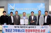 (뉴스인020 = 김성길 기자) 영광군은 11월 5일 경기 화성시 정조효공원 야외무대에서 열린 ‘제7회 대한민국 솔라리그(K-Solar League) 시상식’에서 기후에너지환경부장관상을 수상했다고 10일 밝혔다. ‘대한민국 솔라리그’는 기후위기대응·에너지전환지방정부협의회, 전국지속가능발전협의회, 한국에너지공단, 한국태양광산업협회, 한국태양광공사협회, 한국RE100협의체가 공동으로 주최해 재생에너지 보급 확대와 탄소중립 실현에 기여한 우수 지자체, 공공기관, 민간 업·단체를 발굴하고 포상하는 전국 규모 대회로 올해 7회째를 맞는다. 이번 수상에서 영광군은 △재생에너지 자립률 104% 달성 △군민 참여와 개발이익 공유 조례 제정과 발전 이익을 군민 기본소득으로 지급하는 공유화 기금 조례 제정 △주민주도형 ‘재생에너지 발전 주민참여제도’를 활성화를 위한 읍면별 주민설명회를 여러 차례 개최하여 주민 의견을 폭넓게 수렴한 점 등 혁신적인 정책 추진 노력을 높게 평가받았다. 특히, 염산면 월평마을의 3MW급 전국 최대 규모 주민 주도 영농형 태양광 발전단지는 주민이 56% 지분을 소유하여 마을 28가구에 발전 수익을 배분