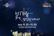 (뉴스인020 = 김성길 기자) 전라남도 나주시가 깊어지는 가을밤, 시민과 관광객에게 환상적인 빛의 향연을 선사한다. 나주시는 오는 11월 21일부터 23일까지 3일간 빛가람 호수공원 일원에서 ‘별이 내린 빛의 정원’을 주제로 ‘2025 빛가람 빛정원 페스타’를 개최해 시민과 함께하는 늦가을 야간축제의 낭만을 밝힌다. 나주시는 이번 축제가 빛과 자연, 예술이 어우러진 도심형 야간정원 축제로 환상적인 조명 연출과 미디어아트를 통해 관람객이 마치 동화 속에 들어온 듯한 ‘빛의 정원’을 체험할 수 있도록 준비하고 있다고 10일 밝혔다. 개막식은 11월 21일 저녁 6시 식전 공연을 시작으로 7시 개막선언과 미디어퍼포먼스 크루의 개막 공연, 점등 퍼포먼스, 빛정원 라운딩 순으로 진행된다. 빛과 음악, 미디어아트가 어우러지는 개막 무대를 통해 축제의 서막을 화려하게 장식할 예정이다. 이번 페스타의 하이라이트인 빛 조형물 전시 구간은 빛가람호수공원 야외무대 뒤 여울다리 입구에서 베매산 산책길까지 이어진다. 다채로운 빛 조형물과 미디어아트 장식이 조성돼 밤하늘 아래 반짝이는 ‘빛의 터널