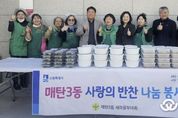(뉴스인020 = 김성길 기자) 영통구 매탄3동은 지난 19일 매탄3동 새마을부녀회가 ‘사랑의 반찬 나눔’ 행사를 진행했다고 밝혔다. 이른 아침부터 매탄3동 행정복지센터로 모인 새마을부녀회원들은 불고기, 나물반찬, 열무김치 등을 정성스럽게 조리해 관내 어려운 이웃 25가구에 전달했다. ‘사랑의 반찬 나눔’은 어려운 이웃들에게 반찬을 나누는 새마을부녀회의 대표 봉사활동이다. 매탄3동 새마을부녀회는 연 4회 정기적으로 반찬을 나눔으로써 이웃 간의 소통에 앞장서 아름다운 지역사회를 만드는 데 기여하고 있다. 김정이 매탄3동 새마을부녀회 회장은 “어려운 이웃에게 작은 도움이라도 되기를 바라는 마음으로 매년 사랑의 반찬 나누기를 하고 있다”며 “이 반찬을 통해 이웃들이 행복했을 느끼셨으면 좋겠다”고 말했다. 김병목 매탄3동장은 “반찬 나눔에 참여해주신 새마을부녀회 회원님들께 감사드리며 따뜻한 매탄3동 지역 사회를 만들기 위해 노력하겠다”고 답했다.