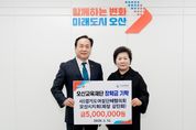 (뉴스인020 = 김성길 기자) 오산시는 지난 10일 경기도여성단체협의회 오산시지회가 지역 인재 육성을 위해 장학금 500만 원을 기탁했다고 밝혔다. 경기도여성단체협의회 오산시지회는 여성의 권익 증진과 지위 향상을 위해 활동하는 단체로 ▲가정폭력 예방교육 ▲양성평등주간 기념행사 ▲불법촬영 금지 및 저출산 극복 캠페인 등을 추진하며 저소득층을 위한 봉사활동과 다양한 사회공헌 활동을 이어오고 있다. 또한 저소득 취약계층 지원금과 특기 장학금 기탁 등 꾸준한 나눔 활동을 펼친 공로를 인정받아 지난해 3월 오산시 명예의 전당에 등재됐으며, 이번에 장학금 500만 원을 추가로 기탁하며 지역사회 공헌 활동을 이어가고 있다. 강진화 회장은 “지역의 우수한 인재들이 자신의 재능을 마음껏 발휘하며 성장하길 바라는 마음으로 회원들과 뜻을 모았다”며 “앞으로도 지역사회와 함께 인재를 키우는 나눔 활동을 지속적으로 이어가겠다”고 말했다. 이권재 오산시장은 “지역 인재 육성을 위해 따뜻한 나눔을 실천해 주신 경기도여성단체협의회 오산시지회에 깊이 감사드린다”며 “회원들의 정성이 담긴 장학금이 오산의 학생들이 자신의 재능을