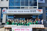 (뉴스인020 = 김성길 기자) 양성면 새마을지도자협의회와 부녀회는 지난 15일 지역 내 독거어르신과 먹거리 취약계층 70가구를 대상으로 ‘행복한 반찬 나눔’ 행사를 열어 따뜻한 온정을 나눴다. 이번 행사는 지역농산물을 활용한 먹거리 지원사업의 일환으로 진행됐으며, 새마을지도자와 부녀회원 40여 명이 참여해 소불고기, 호박죽, 얼갈이 겉절이 등 정성스럽게 준비한 반찬을 손수 만들었다. 이들은 각 가정을 직접 방문해 음식을 전달하며 이웃들에게 따뜻한 위로와 정을 전했다. 정인채 협의회장은 “우리 주변의 이웃들에게 작은 적성이지만 따뜻한 반찬으로 마음을 전할 수 있어 매우 뜻깊다”며 “앞으로도 지역사회를 위한 나눔 활동을 꾸준히 이어가겠다”고 전했다. 최경미 부녀회장은 “회원들이 한마음으로 정성껏 만든 반찬이 소외된 이웃들에게 힘이 됐으면 좋겠다”며 “앞으로도 주민 모두가 함께 행복을 나누는 따뜻한 양성면을 만들어가겠다”고 말했다.