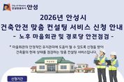 (뉴스인020 = 김성길 기자) 안성시는 올해 ‘건축안전 맞춤 컨설팅 서비스(노후 마을회관 및 경로당 안전점검)’를 시행한다고 밝혔다. 건축안전 맞춤 컨설팅 서비스는 관련 법령상 정기 점검 의무가 없어 정확한 실태 진단과 안전 취약 요소 파악에 어려움이 있는 소규모 노후 마을회관 및 경로당을 대상으로 안전점검을 실시해, 건물 노후화로 인한 안전사고를 예방하고 시민의 안전한 생활환경 조성에 기여하고자 시행하는 사업이다. 점검 대상은 '건축물관리법' 제15조에 따른 소규모 노후 건축물 점검 대상 중 안전에 취약하거나 재난의 위험이 있다고 판단되는 마을회관 및 경로당이다. 주요 점검 항목은 ▲ 건축물 주요 부재의 구조적 균열과 변형 상태 ▲ 건축물 비구조체 결함 사항 ▲ 주변 축대, 옹벽, 담장 등의 안전상태 등이며, 점검자가 직접 현장을 방문해 육안점검 방식으로 진행된다. 점검을 희망하는 마을회관 및 경로당의 소유자 또는 관리자는 신청서를 작성해 안성시청 건축과에 방문 접수하거나 등기우편으로 접수할 수 있으며, 신청은 연중 상시 가능하다. 점검 후에는 건축물 관리자에게 점검 결과와 함께 보