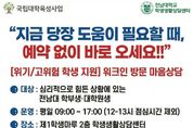 (뉴스인020 = 김성길 기자) 전남대학교가 심리적 위기 상황에 놓인 학생을 ‘그 순간’ 바로 지원하는 즉시 개입형 상담체계를 구축했다. 예약과 대기를 없애고 방문 즉시 전문가와 연결하는 ‘워크인(Walk-in) 심리상담’을 도입해, 위기 대응의 골든타임을 확보하고 고위기·고위험군 학생 보호를 한층 강화한다. 1일 전남대에 따르면, 학생생활상담센터는 심리적 위기를 경험하는 학생들을 신속하게 지원하기 위해 ‘워크인(Walk-in) 심리상담’ 제도를 도입하고 본격 운영에 들어갔다. ‘워크인 심리상담’은 별도의 사전 예약 없이 센터를 방문하면 즉시 상담 전문가와 연결되는 밀착형 지원 시스템이다. 특히 심리적 긴급 상황이나 고위험군에 속한 학생들이 초기 개입 시점을 놓치지 않고 전문적인 상담을 받을 수 있도록 설계됐다. 이번 제도는 학생들이 도움을 요청하는 ‘바로 그 순간’에 개입하는 것을 핵심으로, 기존 예약 중심 상담 체계의 한계를 보완하고 보다 신속하고 실효성 있는 위기 대응을 가능하게 할 것으로 기대된다. 정주리 학생생활상담센터장은 “학생들이 마음의 문을 열고 도움을 요청